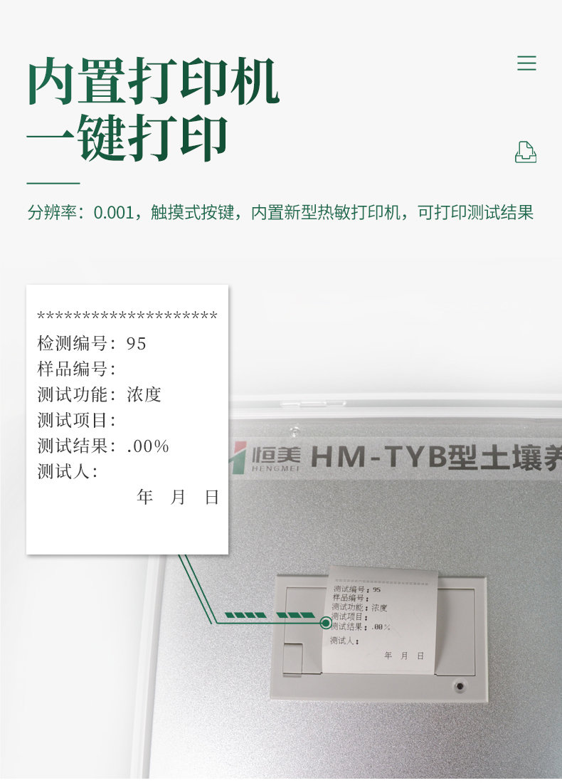 ★分辨率:0.001,觸摸式按鍵,內置新型熱敏打印機,可打印測試結果。
