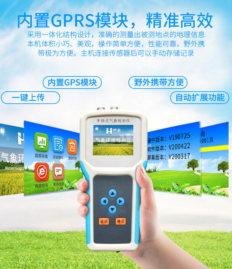 采用一體化結(jié)構(gòu)設(shè)計,內(nèi)置GPS模塊,4G模塊,外置SD卡,能準(zhǔn)確的測量出被測地點的地理信息,界面除顯示所測環(huán)境參數(shù)、存儲數(shù)據(jù)外,還可顯示測點的經(jīng)緯度。通過內(nèi)置的GPRS一鍵上傳被測點的環(huán)境因子測量數(shù)據(jù)等。同時還可以通過外置SD卡直接把數(shù)據(jù)導(dǎo)出到電腦上。(可選)
