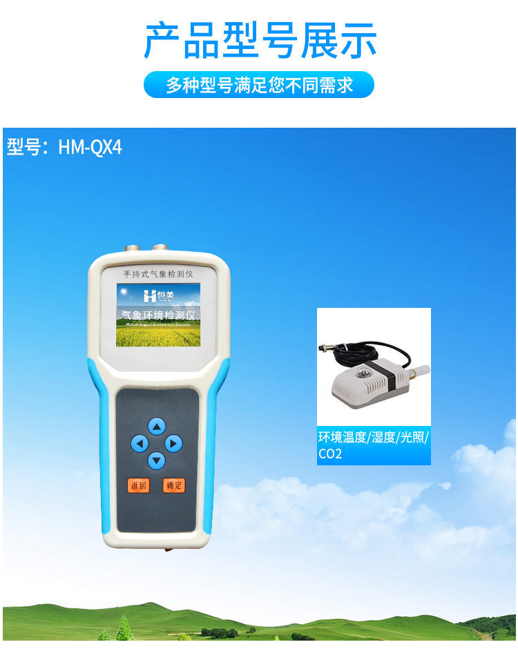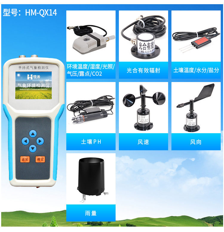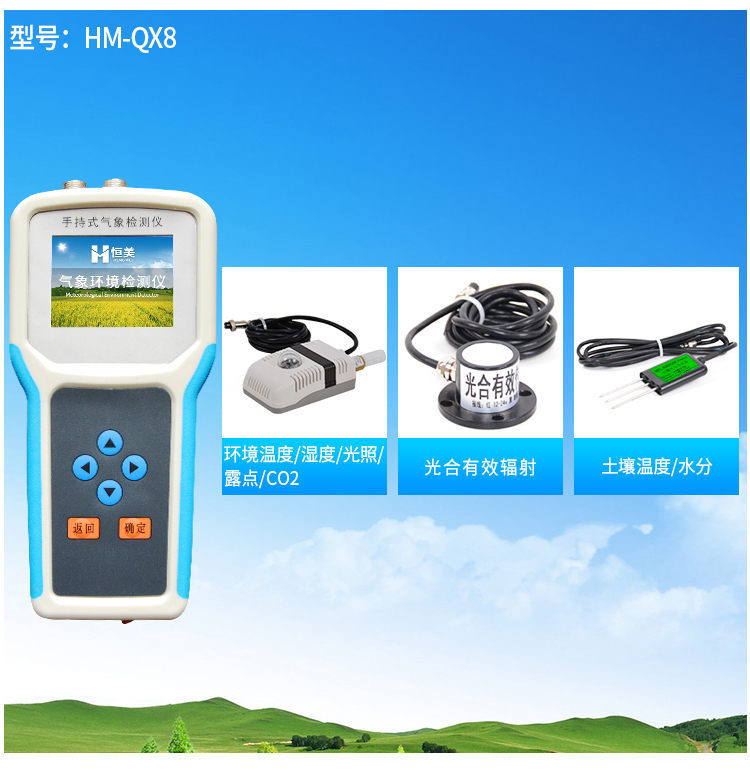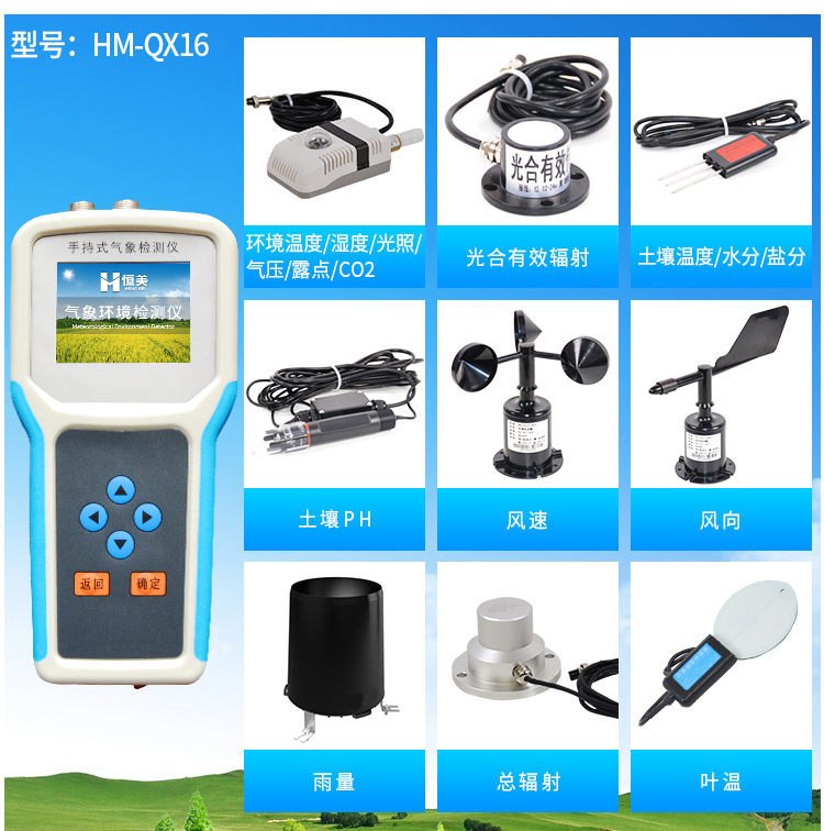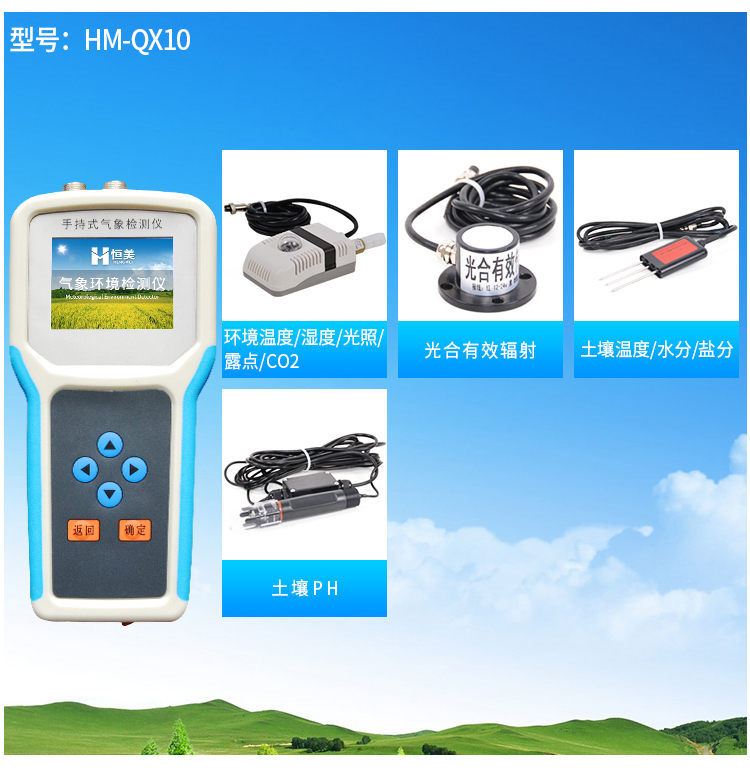 氣象監(jiān)測儀器是我們專門針對農(nóng)田、草場局部小尺度環(huán)境設(shè)計的,對與植被和農(nóng)作物生長密切相關(guān)的土壤、水氣等環(huán)境參數(shù)監(jiān)測的農(nóng)田小氣候站。它主要觀測與農(nóng)業(yè)相關(guān)的空氣溫度、空氣濕度、光照強度、二氧化碳濃度、露點溫度、光合有效輻射、土壤溫度、土壤水分、土壤鹽分、土壤PH、風(fēng)速、風(fēng)向、降雨量、大氣壓力等14個環(huán)境參數(shù)氣象要素,為農(nóng)業(yè)科研、農(nóng)業(yè)生產(chǎn)等提供良好的支持。