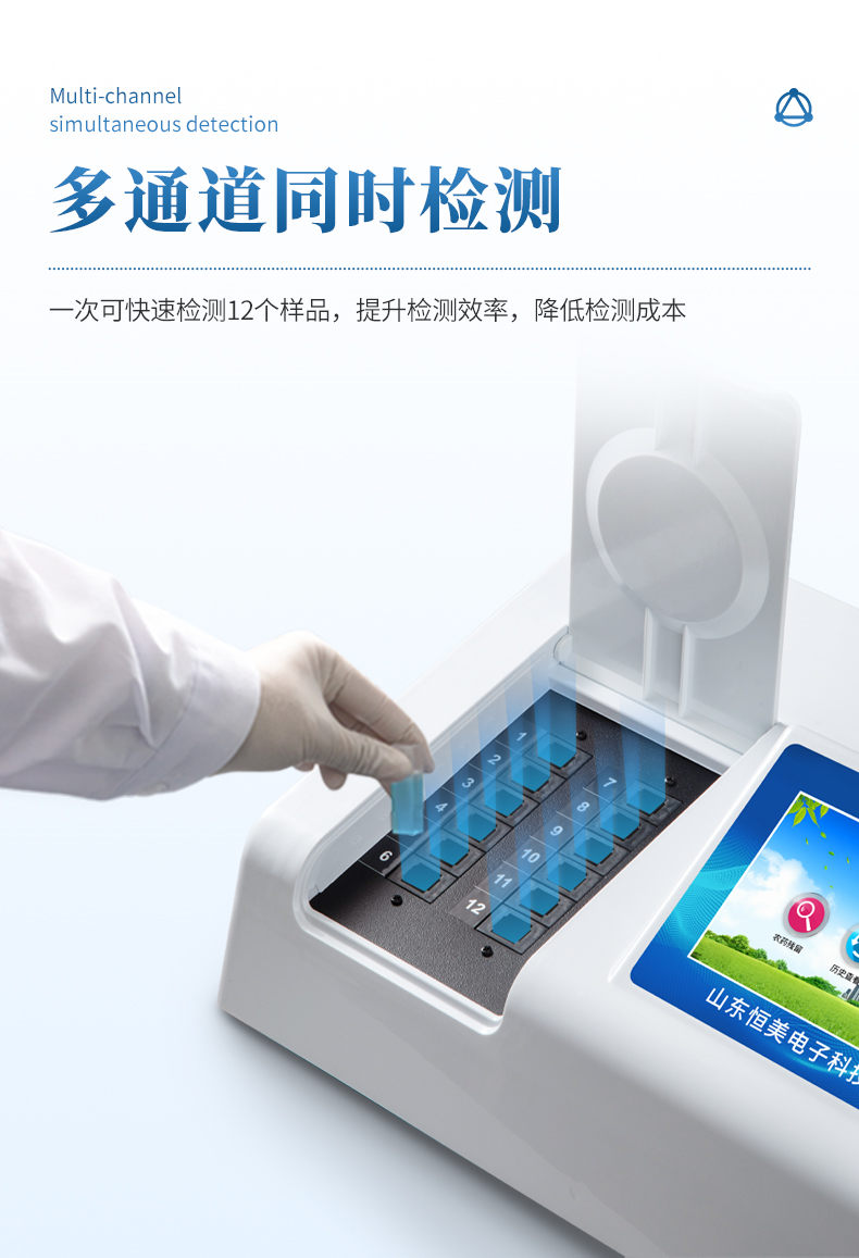 3、雙聯排12個檢測通道(固態化設計),一次性可快速檢測12個樣品,極大提升檢測效率,降低檢測成本。