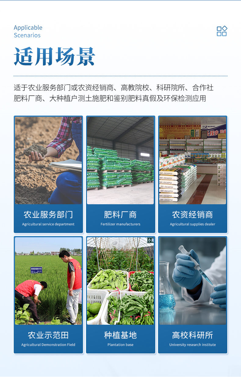 配套齊全:該儀器相當于一個小型實驗室,無需用戶自配附件。適于農業服務部門或農資經銷商、合作社、肥料廠商、大種植戶測土施肥。